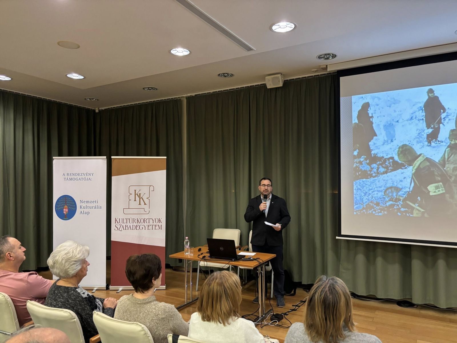 A Szabadegyetem idei első előadásán Töttős Gábor, a Tolna Vármegyei SZC Hunyadi Mátyás Vendéglátó és Turisztikai Technikum és Szakképző Iskola igazgatója tartott előadást a Don-kanyarban történtekről, valamint azok kiváltó okairól.