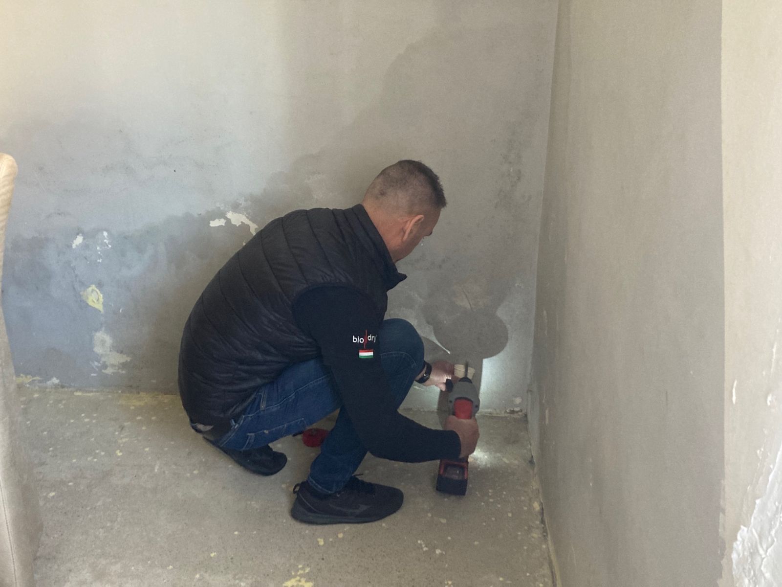 A falak belsejéből vett minta alapján határozzák meg a fal nedvesedésének százalékát. A magas páratartalom 3-4 hónap alatt szűnik meg.