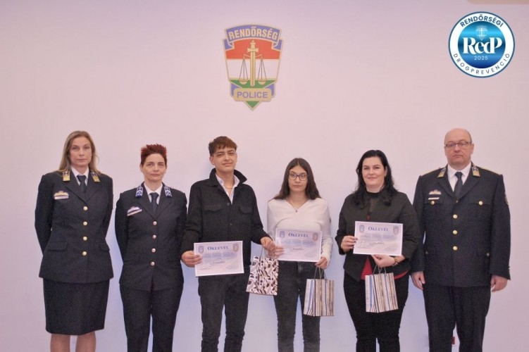 Megyeri Zsolt r. alezredes, a Bonyhádi Rendőrkapitányság vezetője december 10-én fogadta a három nyertest. Fodor László, Bublik Kiara és Szücs Kristóf – akik a Déli ASZC Apponyi Sándor Mezőgazdasági Technikumban tanulnak – töltötte ki legjobban a tesztet, és mindhárman leírták gondolataikat is a témáról, a veszélyekről, valamint a megelőzés lehetőségeiről. A rendőrkapitány gratulált a fiataloknak, és egy kis ajándékot is átadott nekik.