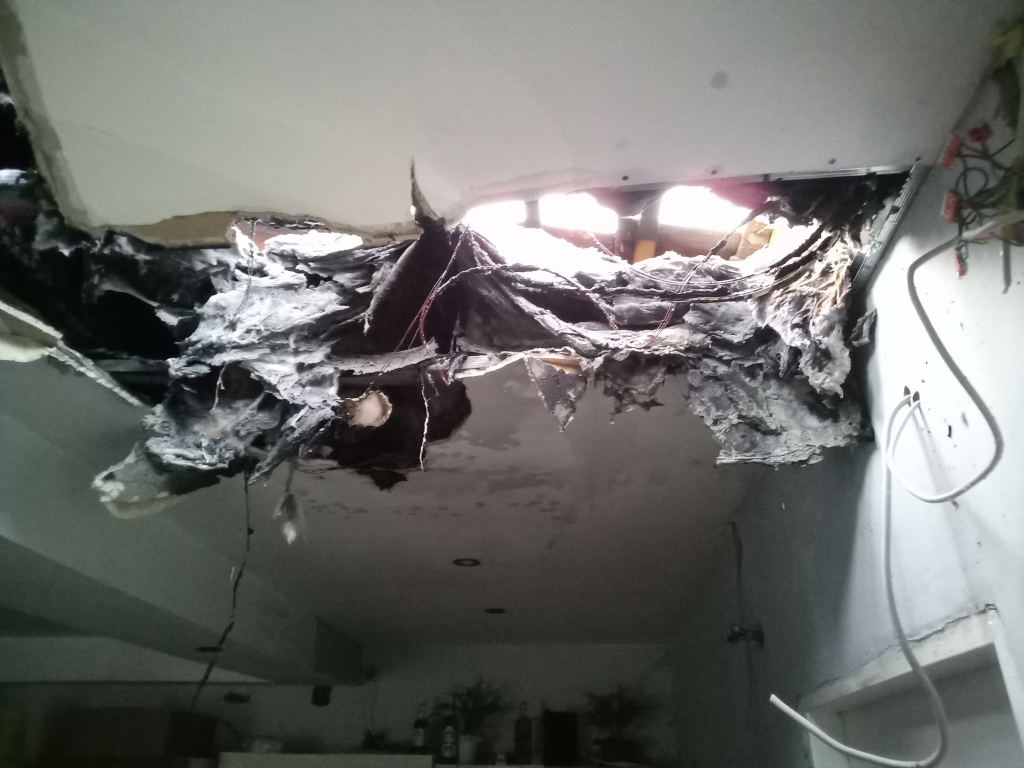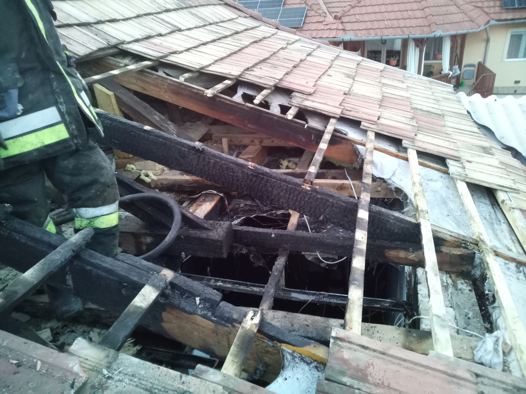 A tető megbontásával egy vízsugár és kéziszerszámok segítségével oltották el a két gerendát érintő lángokat.