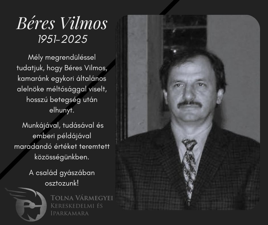 A szomorú hírt a Tolna Vármegyei Kereskedelmi és Iparkamara osztotta meg közösségi oldalán.