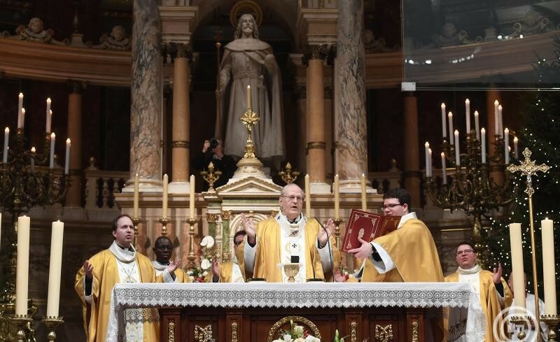 A bíboros a zsúfolásig telt Szent István-bazilikában arról beszélt: a karácsonykor meggyújtott gyertyák az örök és mindent betöltő fényességet jelképezik, amely Krisztus születésével "eljött közénk, és azóta is velünk járja a történelem útját".