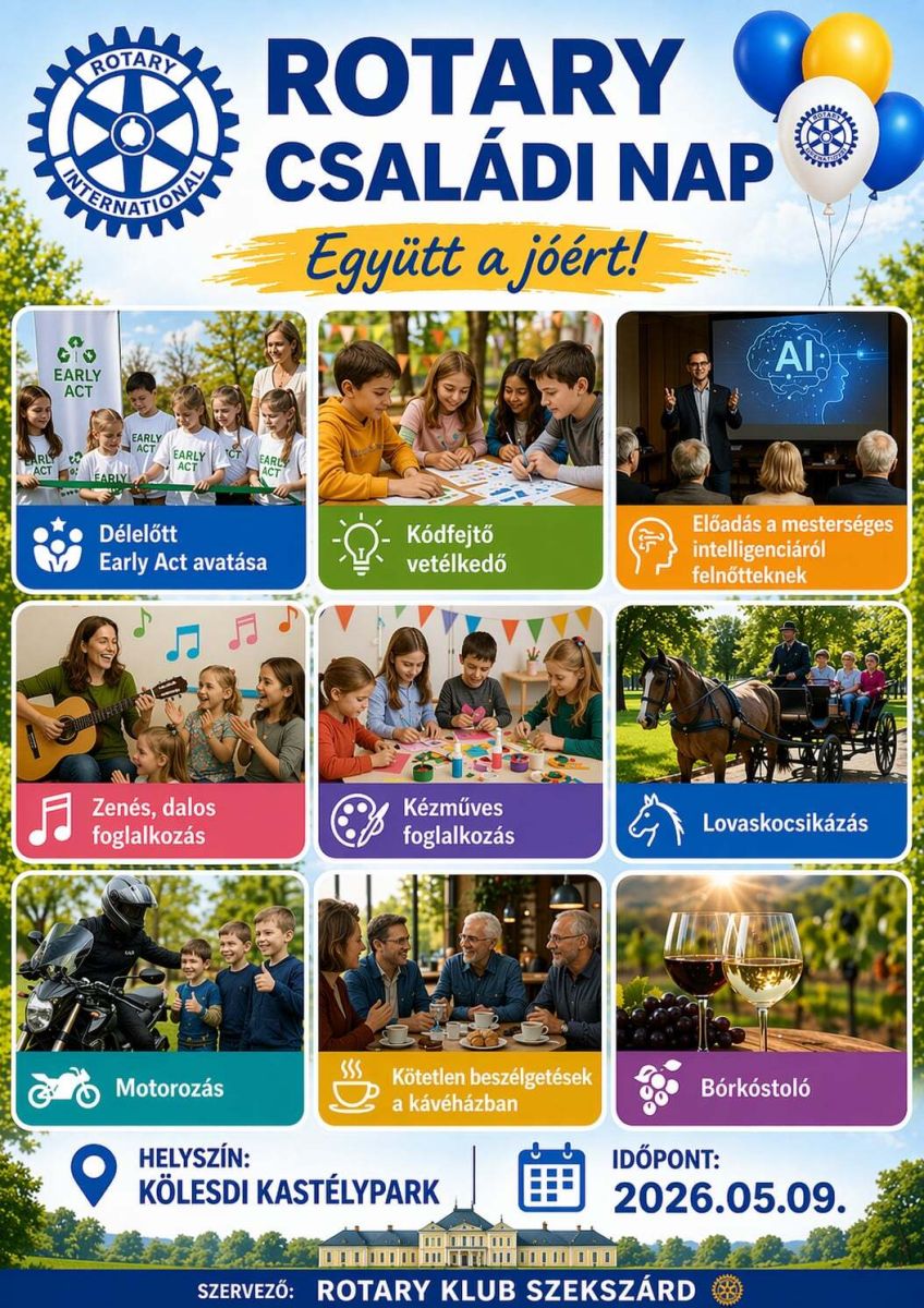 A Rotary Club Szekszárd 2026. május 9-én rendezi meg hagyományos Családi Napját. A sokak által már jól ismert rendezvény tematikája idén eltér a korábbi évekétől.