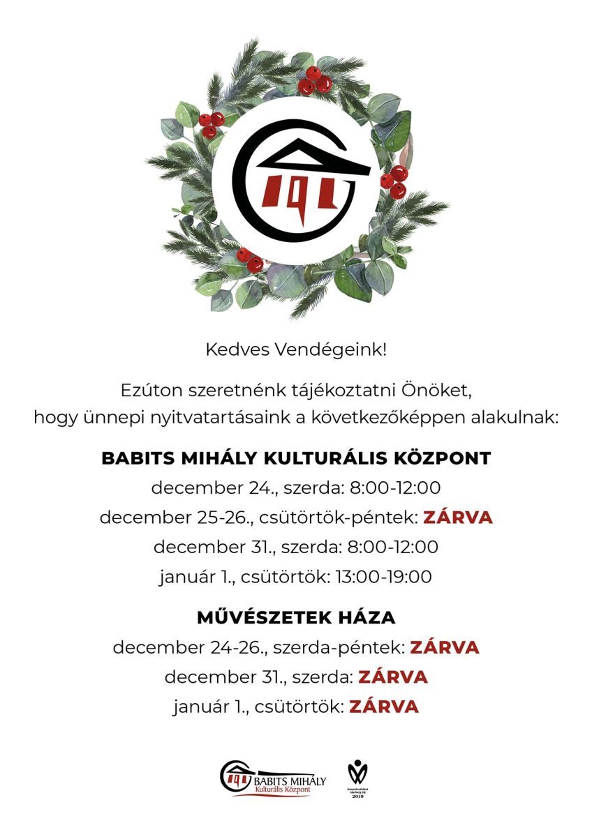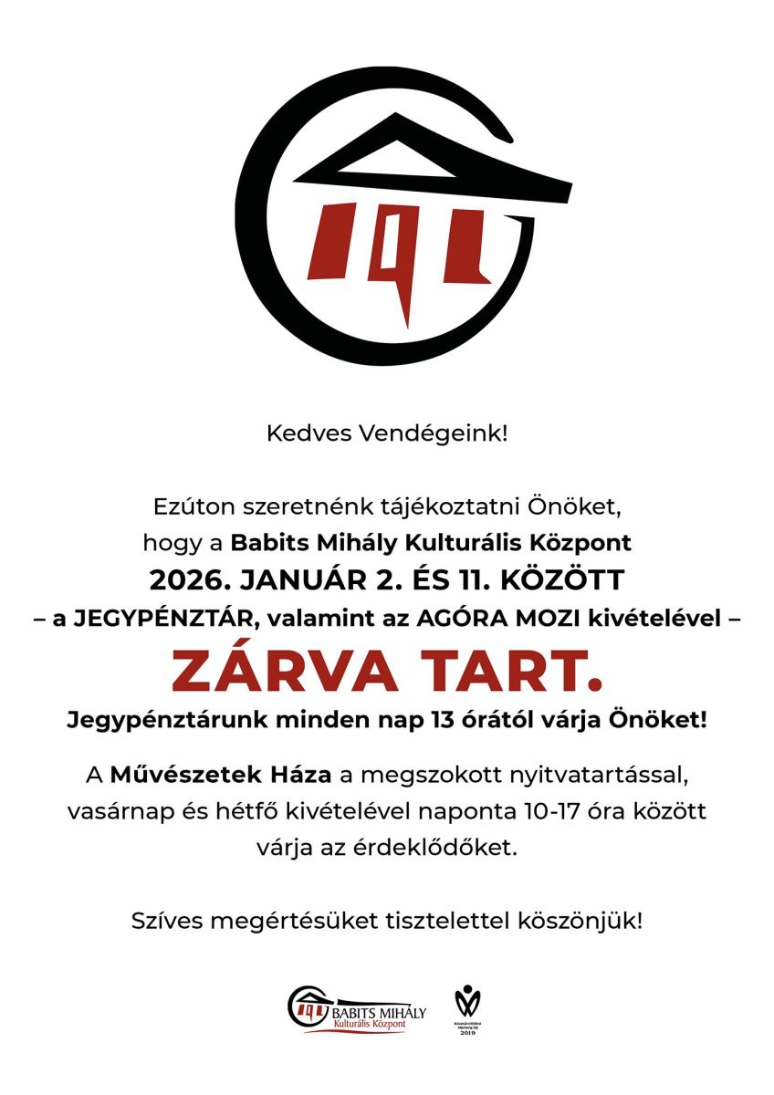 Közreadta az év végi, ünnepi nyitvatartását Szekszárdon a Babits Mihály Kulturális Központ. Ha programot tervezel, jó tudni, hogy mikor van például mozi, vagy jegypénztár. Tartalmas téli szünidőt.