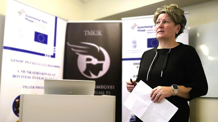 A foglalkoztatási támogatásokról Némedi Ágnes, a kormányhivatal Foglalkoztatási, Foglalkoztatás-felügyeleti és Munkavédelmi Főosztályának vezetője tartott előadást. Bemutatta a GINOP Plusz uniós programok által kínált támogatási lehetőségeket: a GINOP Plusz 4.1.1 Ifjúsági Garancia plusz program a fiatalok elhelyezkedését, munkatapasztalat szerzését, a GINOP Plusz 3.1.1 munkaerő-kínálat fejlesztését és bővítését célzó projekt a 30 éven felüli álláskeresők és inaktívak munkához jutását mozdítja elő különféle támogatásokkal: a foglalkoztatók részére nyújtott bértámogatással, mobilitási támogatásokkal (lakhatási támogatás és utazási támogatás), valamint képzésekkel, melyekkel piacképes szakképzettség szerezhető.