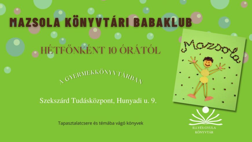 - Kovácsné Szabó Lívia gyermekkönyvtáros mesél, mondókázik, énekel 0-3 éves korú babákkal és szüleikkel.