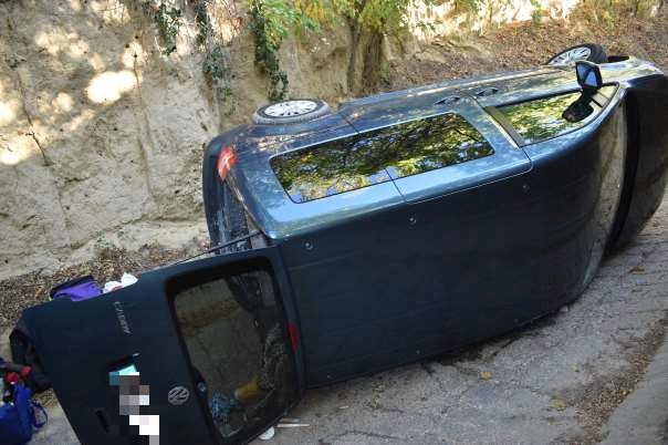 A partfalra hajtott autójával, majd felborult. Az autóban utazók használták a biztonsági övet, csak anyagi kár keletkezett.