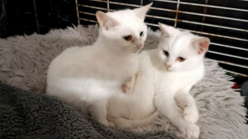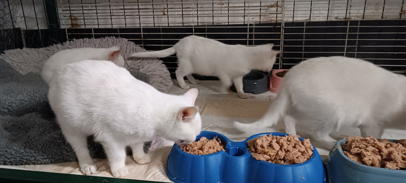 Igazi kis csodák, dorombolós cicusok. Négy gyönyörű, 5 hónapos, mentett, hófehér kiscica keresi szerető, felelős gazdáját. 3 fiú és 1 lány, mindannyian kedvesek, bújósak, dorombolósak, és nagyon embercentrikusak.