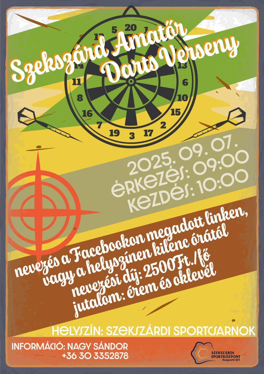 Ha nem gond eltalálni a táblát, nevezz. Persze azért ennyi nem elég! Szekszárd Amatőr Darts Versenyre várják az indulókat, melynek helyszíne a Szekszárdi Sportcsarnok