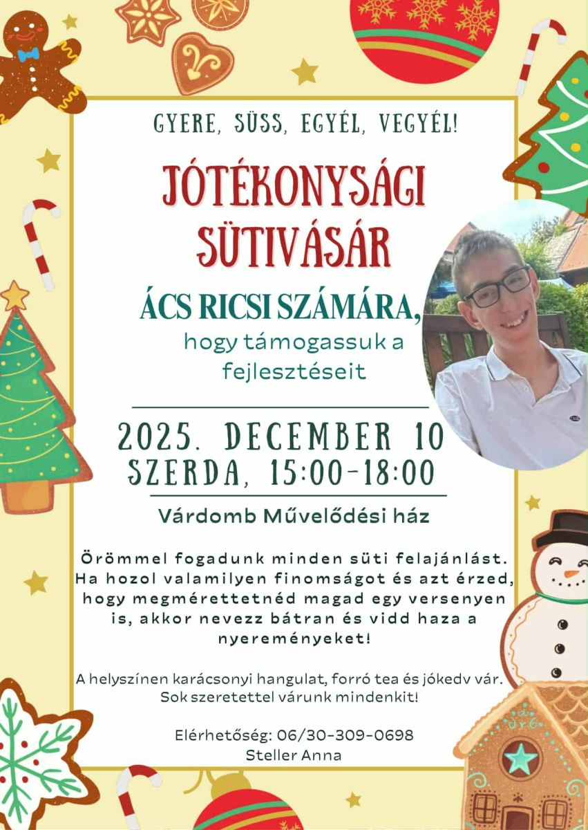 Immár negyedik alkalommal. Gyere Te is! Segítsd megvalósítani Ricsi álmait. Süss, egyél, vegyél! A rendezvény helyszíne Várdomb.