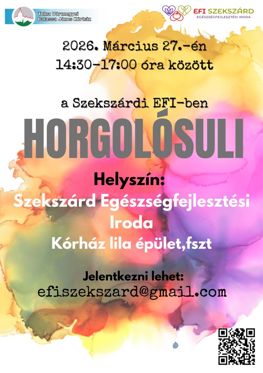 Ebben a hónapban is sok szeretettel várják a horgolni vágyókat! Az Egészségfejlesztési Iroda – EFI Szekszárd ajánlja figyelmedbe a következő alkalmat.