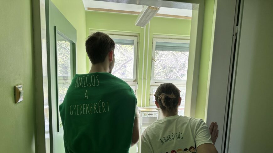 "Az Amigos egyetemista önkéntesei országszerte azért látogatják a kórházban gyógyuló gyermekeket, hogy játékkal, tanulással és barátsággal tegyék könnyebbé a bent töltött napokat"