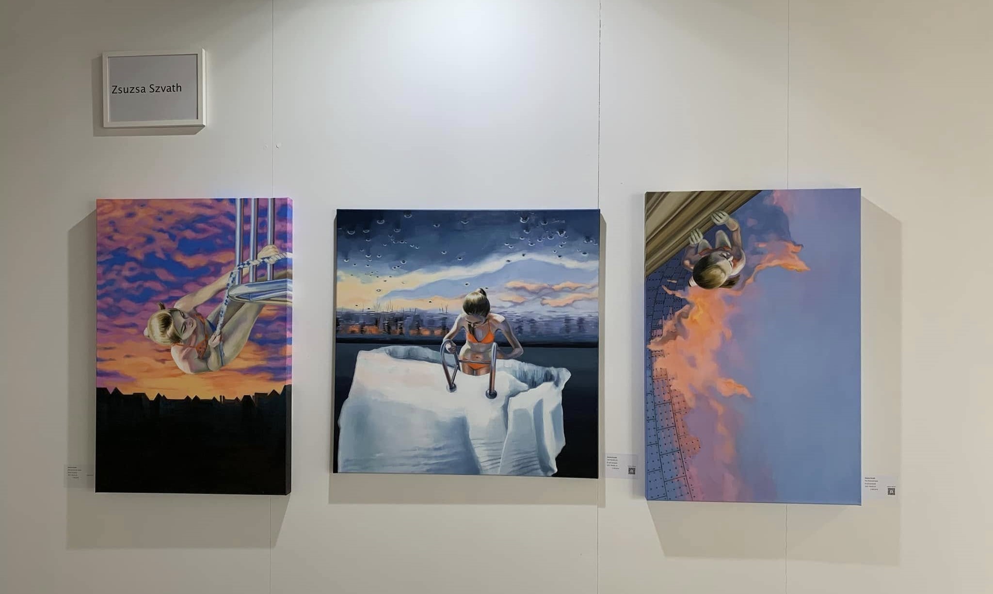 A május végéig látható tárlat a fizikai és belső horizont határát vizsgálja, lebegő terekbe helyezett figurákon keresztül, a kortárs festészet egyedi, metaforikus-realista megközelítésében.