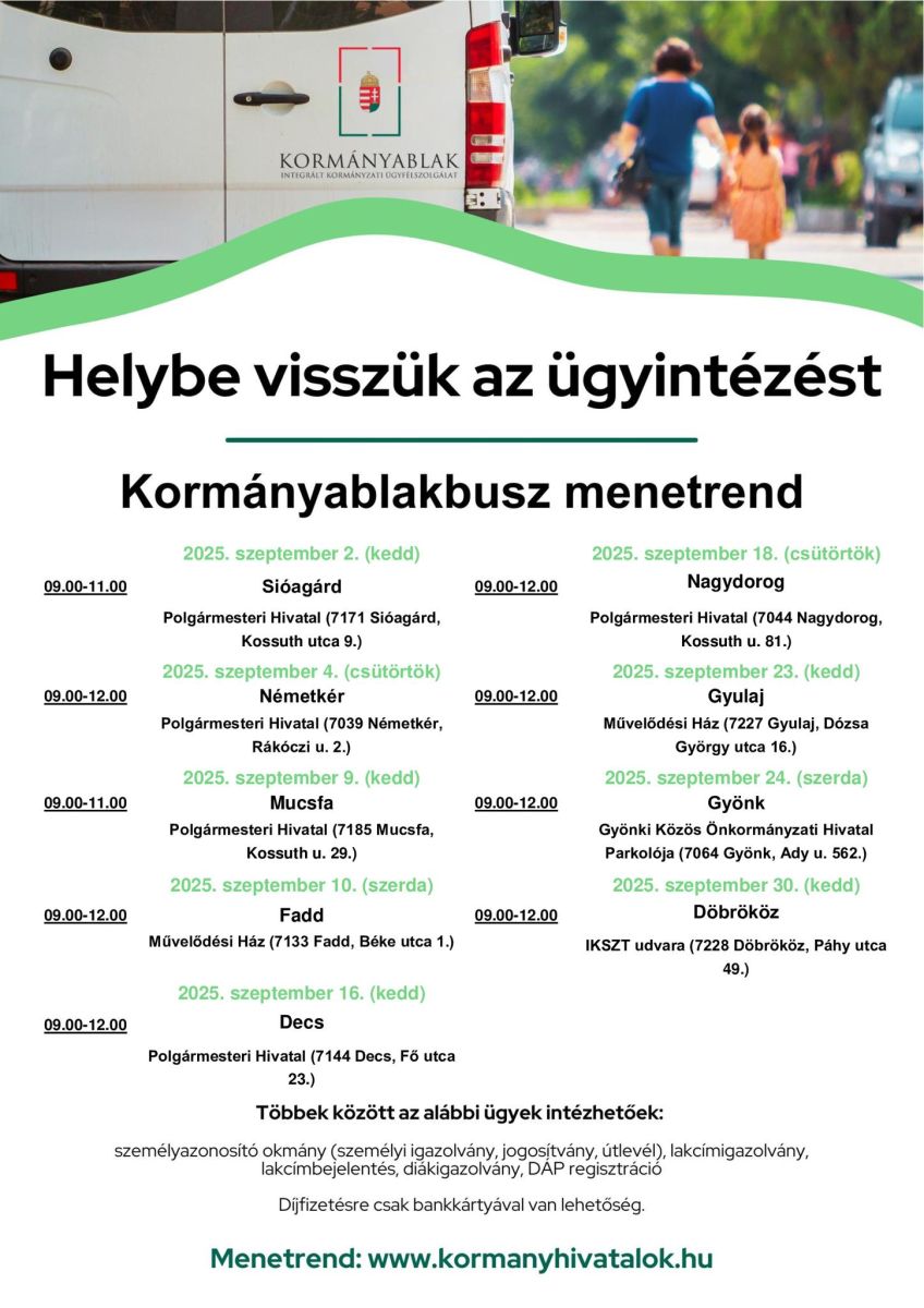 A kormányablakbuszokban – többek között – az alábbi ügyek intézésére van lehetőség: