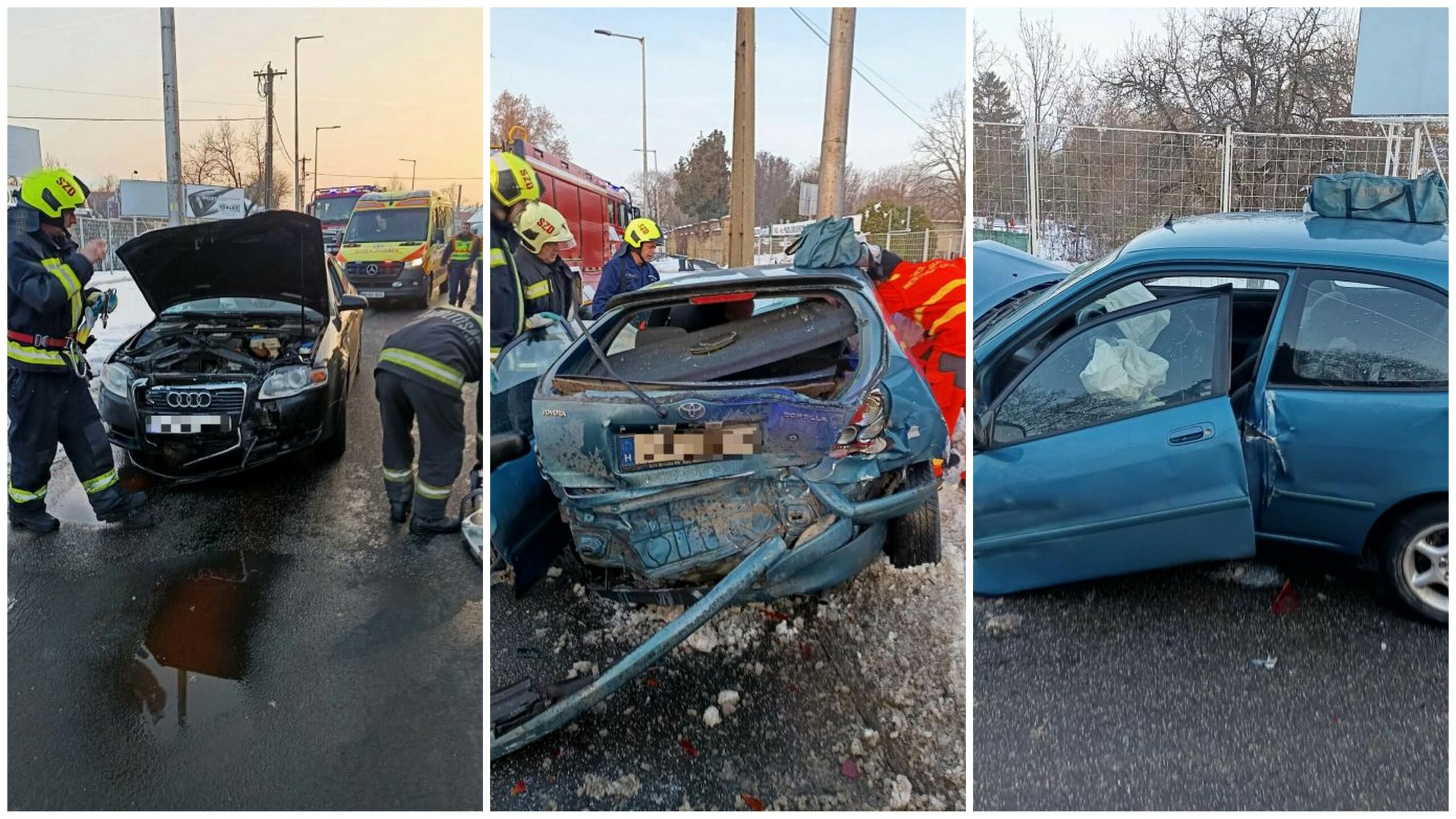 A súlyosan roncsolódott személyautó három utasa közül két felnőtt súlyos, egy gyermek pedig könnyű sérüléseket szenvedett.