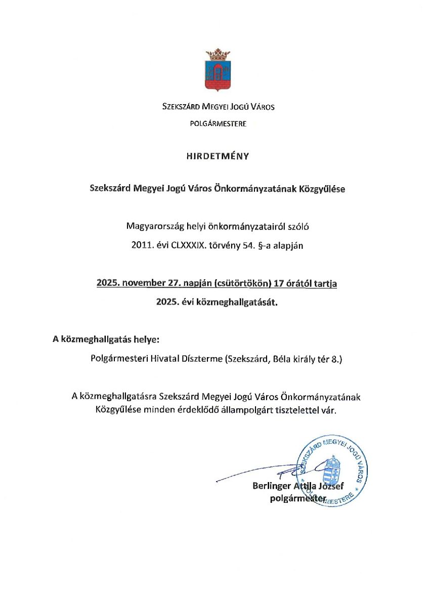 November 27-én 17 órakor várják az érdeklődőket, Szekszárdon. Helyszíne a Polgármesteri Hivatal Díszterme.