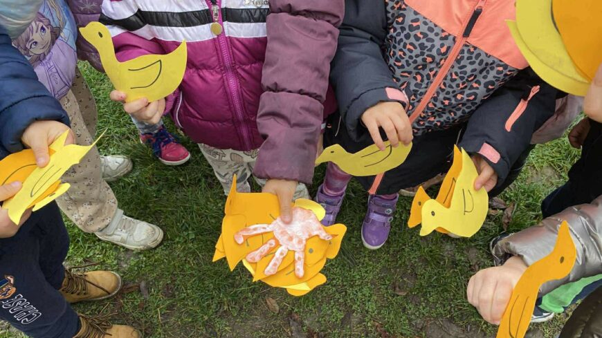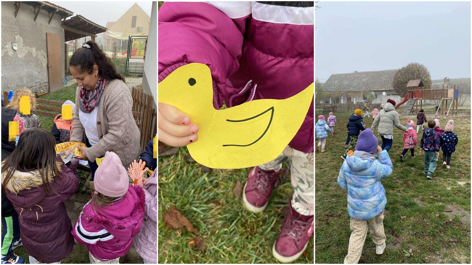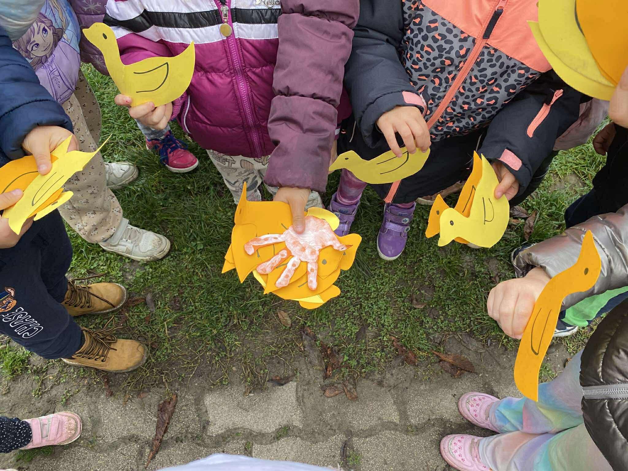 A foglalkozás során a gyermekek papírludakat készítettek, amelyeket később az óvoda udvarán elrejtettünk, majd a gyermekek közösen keresték meg azokat.