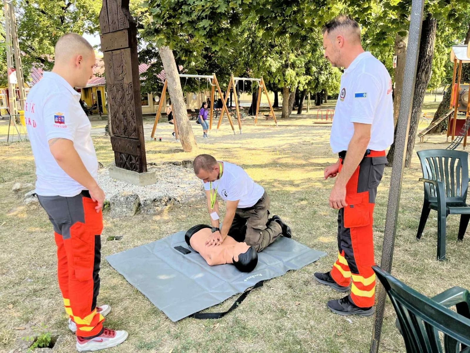 A következő állomásnál az Országos Mentőszolgálat várta a motorosokat. Elsősegély témájú tesztlapokat kellett kitölteniük, majd a mentők irányításával gyakorlati feladatokat hajtottak végre. A résztvevők olyan tudást szerezhettek, amely bármikor életmentő lehet az utakon.