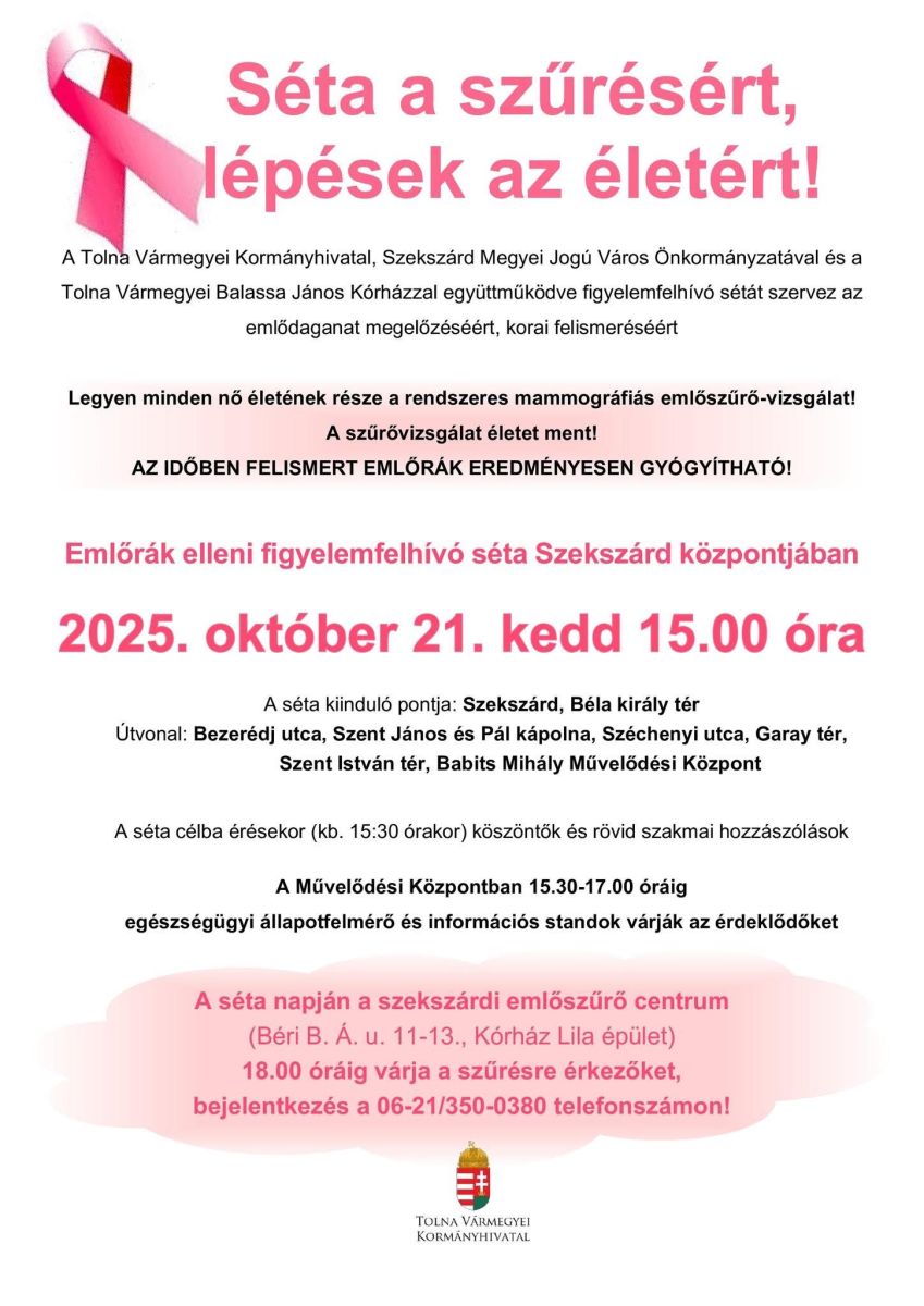 Ne feledd, várnak ma Téged is Szekszárdon a Béla király téren. Emlőrák elleni figyelemfelhívó séta indul 15 órakor.