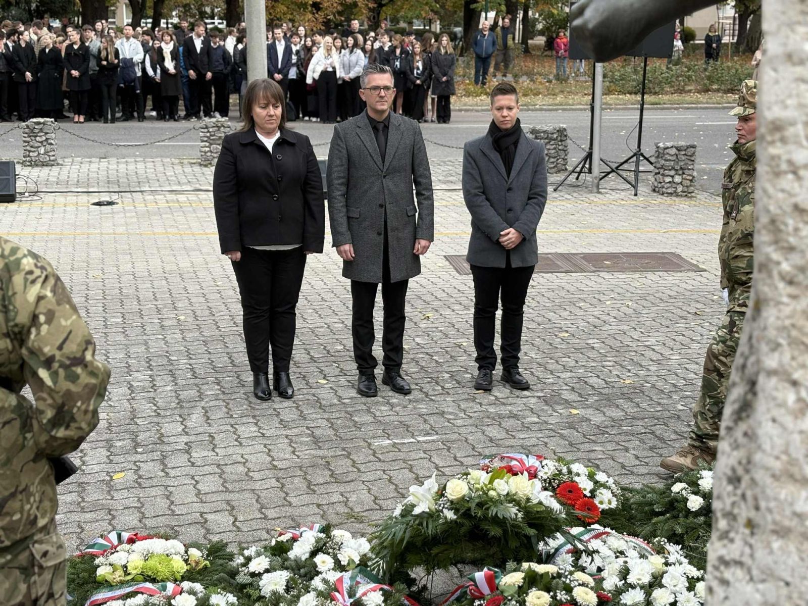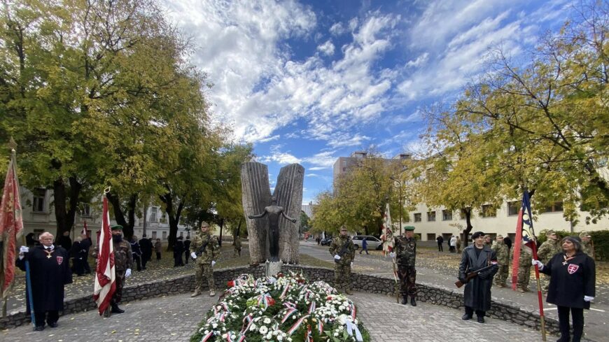"Az eseményt koszorúzás zárta, intézményünk képviseletében Gonda Mária ügyvezető igazgató, Varga Dalma szakmai igazgatóhelyettes és Gödrei Zoltán kommunikációs osztályvezető hajtott fejet az ’56-os hősök emléke előtt"