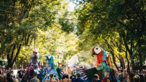 … de nem is akárhogy. Négy darabot is teljesen átalakított két MOME-s diák. Ezek a dizájnos WC-k tulajdonképpen művészeti installációk. Az egyik pont olyan, mintha a nyitónap headlinerének, Charli XCX-nek legutóbbi albuma, a brat megelevenedne a belső térben. A másikba benyitva akár sakkozhatunk is a fesztivál közepén, de készíthetünk leopárdmintás „nagyon glamour” fotókat vagy épp megannyi diszkógömb közt találjuk magunkat. S ha már toi-toi, egyszer csak valahol benyithatunk egy Secret Partyba is. De ez titok.