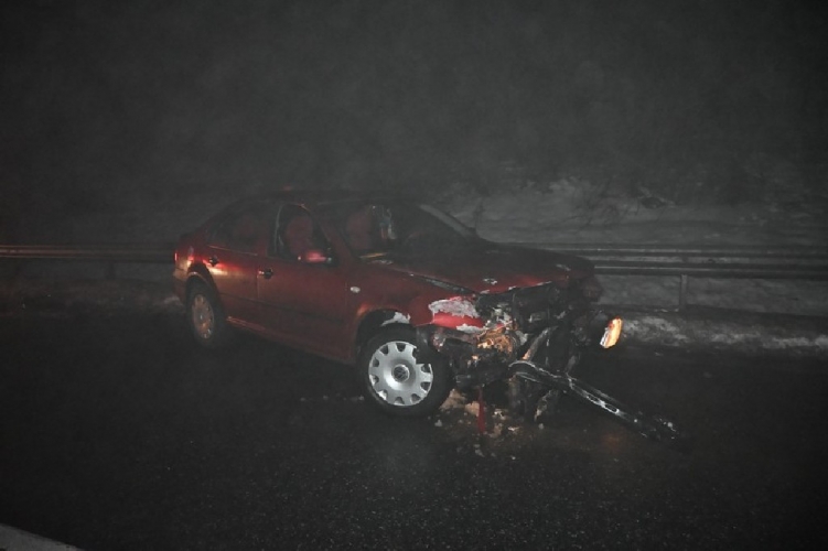 Először megcsúszott, majd elvesztette uralmát kocsi irányítása felett és a szemközti sávba sodródott, ahol a szemből érkező autó bal elejének ütközött.