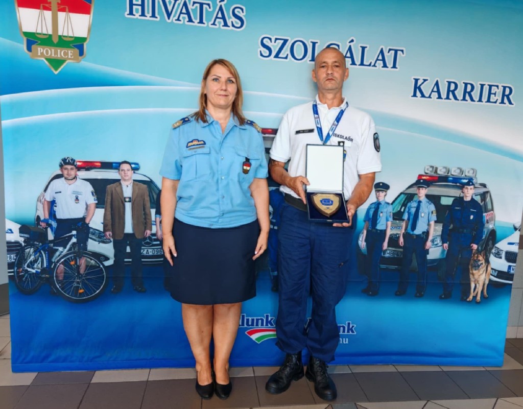 A jutalmazottnak személyesen gratulált Dr. Hablicsek Nikoletta r. ezredes, Tolna Vármegye rendőrfőkapitánya.