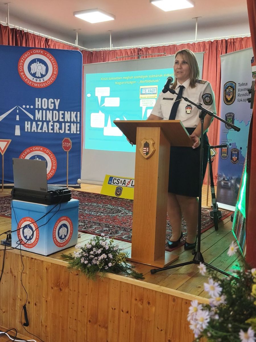 Dr. Hablicsek Nikoletta r. ezredes vármegyei rendőrfőkapitány köszöntötte Kölesden a közlekedési szakembereket szeptember 25-én, mely a roadshow első állomása volt. A főkapitány hangsúlyozta a téma fontosságát és megköszönte a Közlekedéstudományi Intézet munkáját.