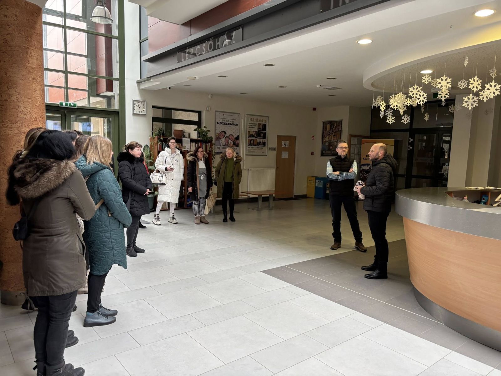 A Baranya, Bács-Kiskun, valamint Tolna vármegyéből érkező vendégeknek Herrné Szabadi Judit közművelődési szakember és Gödrei Zoltán kommunikációs osztályvezető mutatta meg az épületeket, mesélt azok történetéről, valamint a rendezvény- és programszervezés kulisszatitkairól.